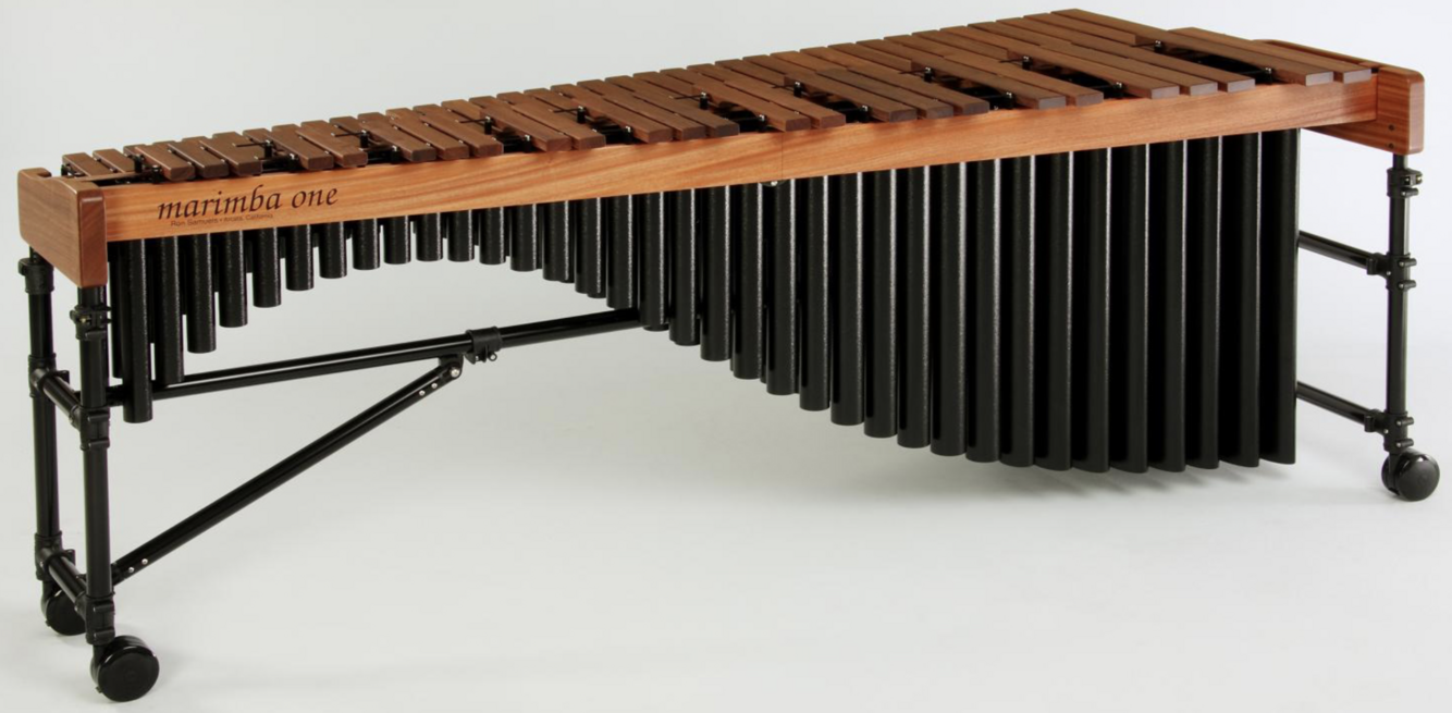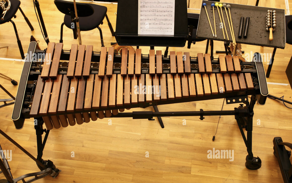 Definite pitch, horizontal wooden bars arranged like a piano (more mellow than xylophone, hit with softer beaters)