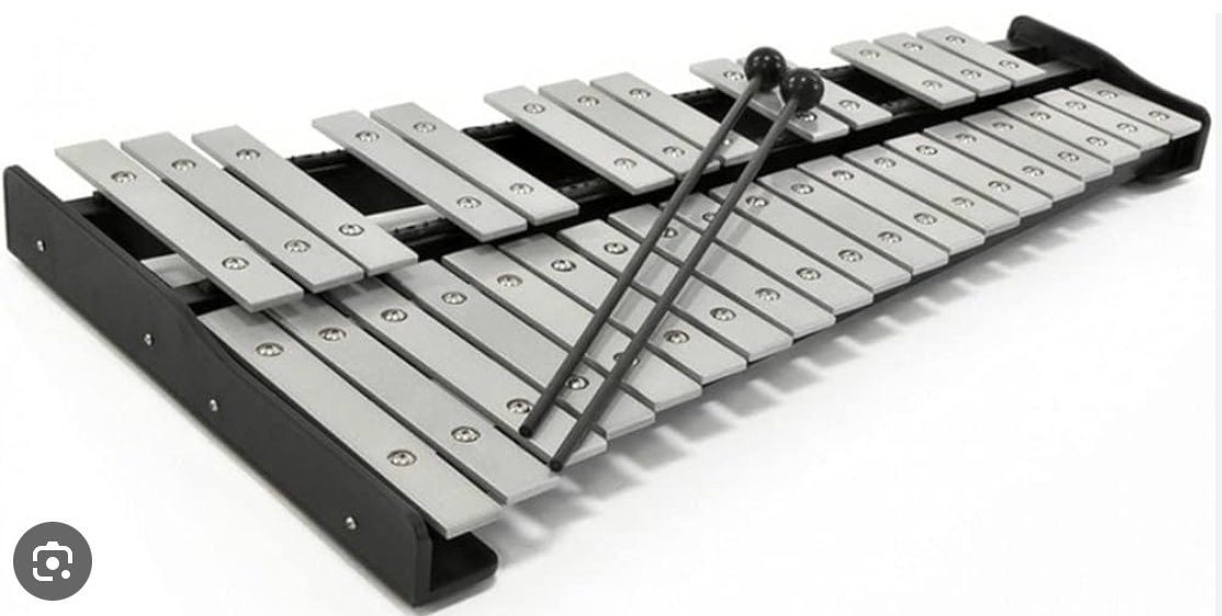 Definite pitch, looks like a piano but contains metal bars instead of strings, produces a bell like sound