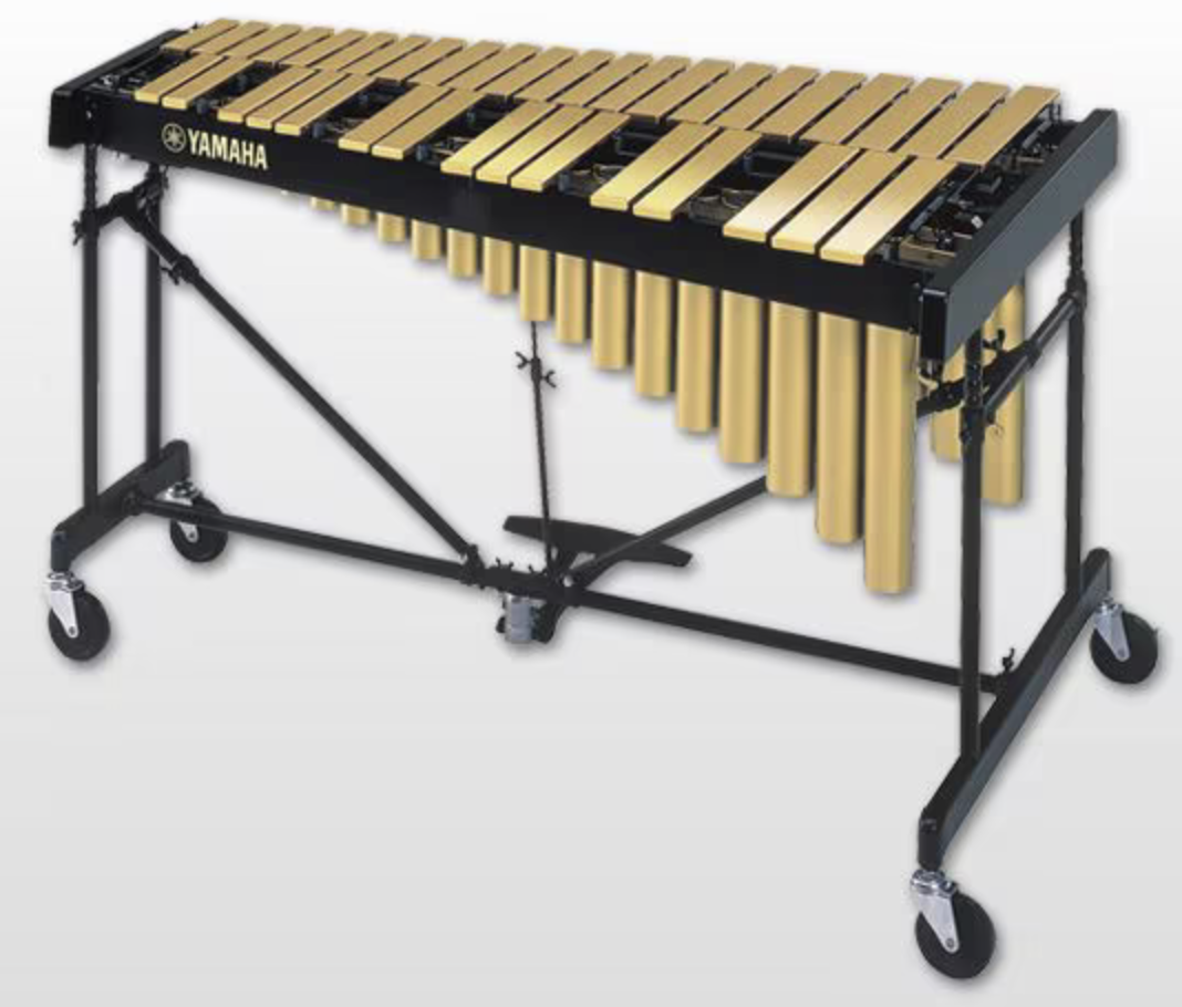 Definite pitch, horizontal metal bars arranged like a piano and hit with beaters (softer than glockenspiel, has motor to add vibrations to sound)