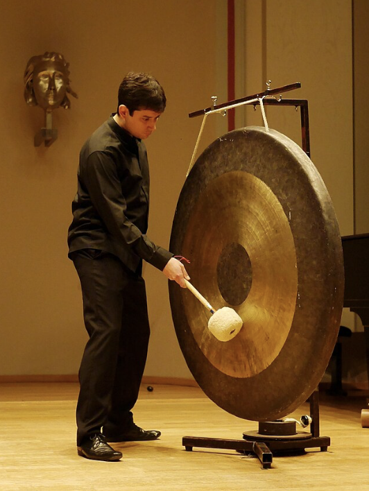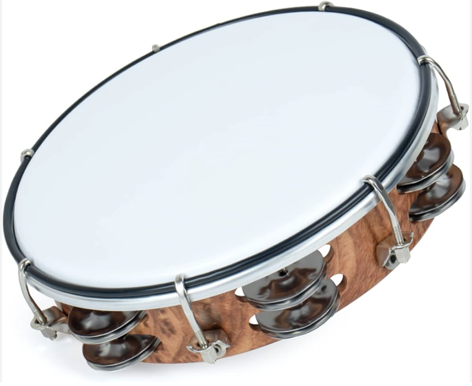 Indefinite pitch, small cymbal-like discs around the outer edge, sometimes has a skin/membrane, hit or shaken by hand