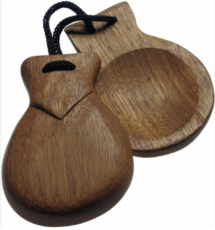 Indefinite pitch, two small discs of wood hit together with fingers, originates from Spain