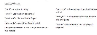 List the note ranges of the main string section