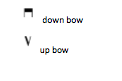 Write out symbols for down bow an up bow