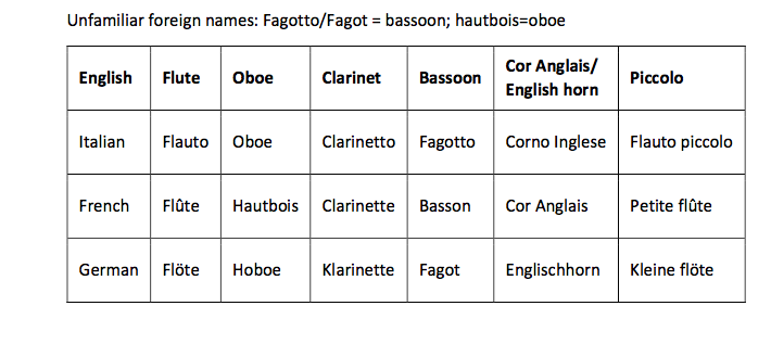 What is a standard woodwind section