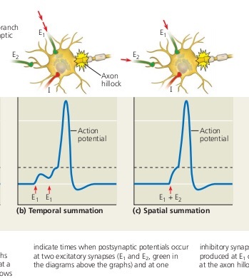 synaptic potentials produced by DIFFERENT pre-synaptic neurons on the same post-synaptic cell