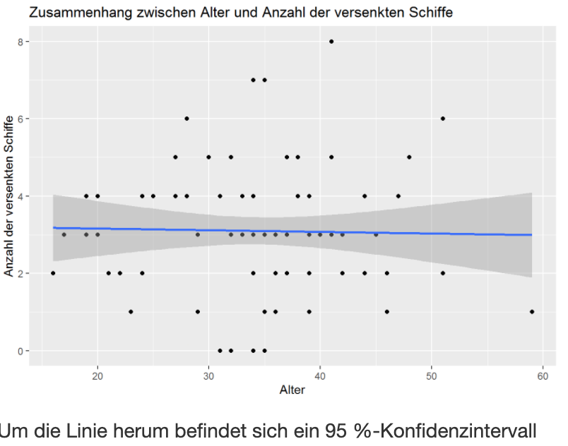 Beim Befehl für die Regressionsgerade wirft das Programm zusätzlich den Konfidenzintervall aus. Wie entfernen wir diesen?