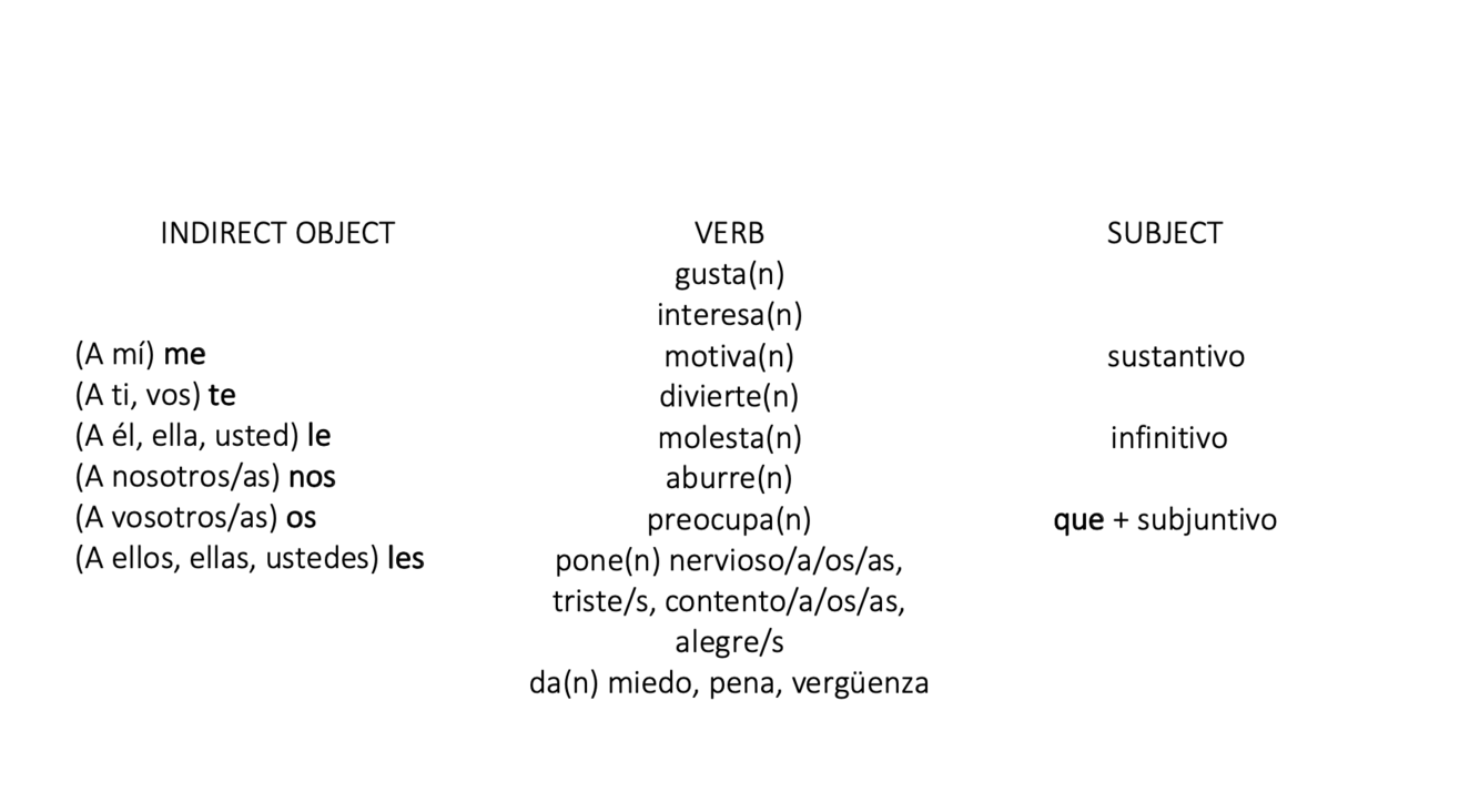 VERBS TO EXPRESS LIKES, FEELINGS, AND EMOTIONS WITH AN INDIRECT OBJECT