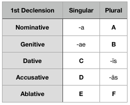 Nominative, Genitive, Dative, Accusative, and Ablative