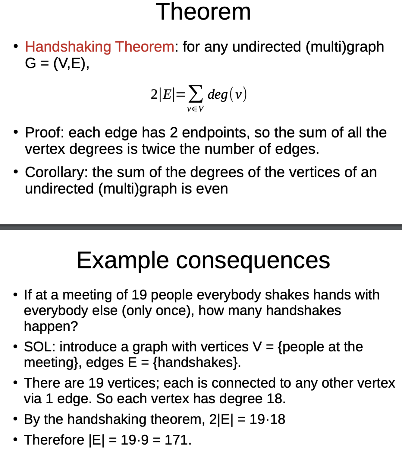 What is the handshaking theorem?