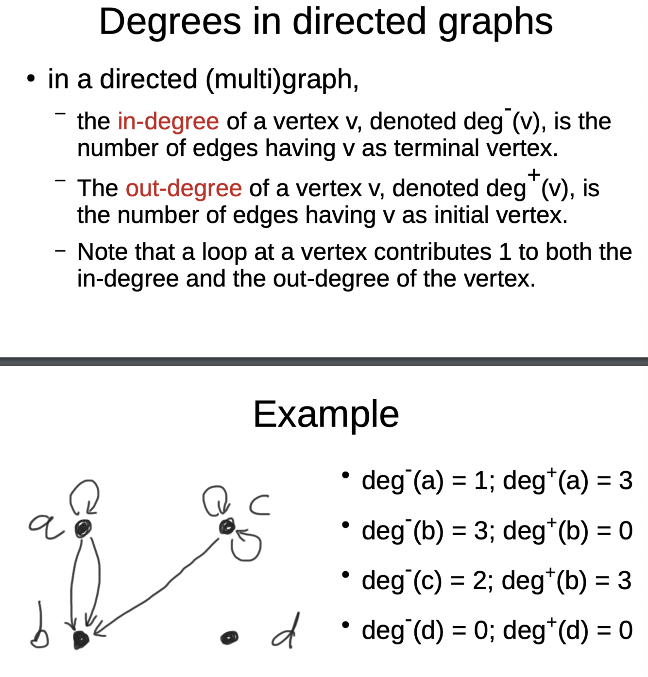 What are in-degrees and out-degrees in directed graphs?