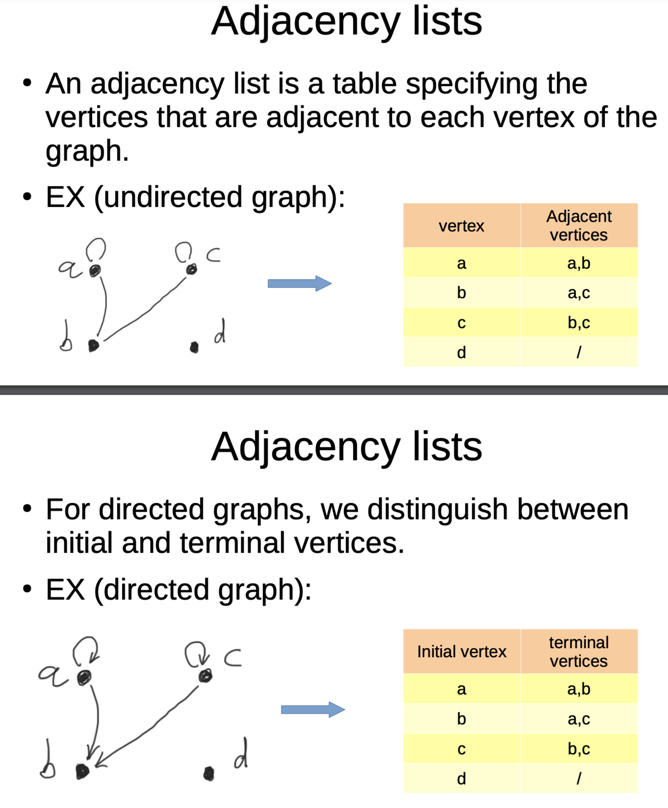 What are adjacency lists?