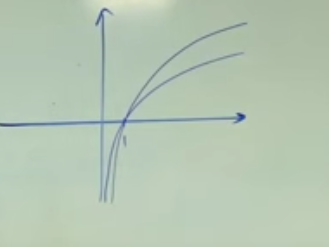 lnx is the one below because e is greater than 2 so the x values will increase faster