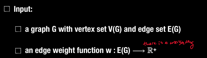 minimum spanning tree: a weight graph G, whose set of edges has the least possible total weight when compared to all spanning trees in G