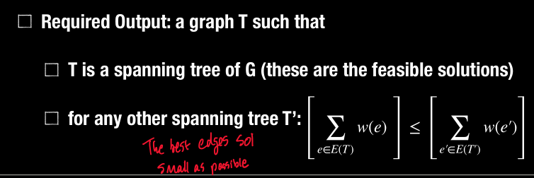 Among those, for a MST we are looking for the feasible solution with the minimum cost