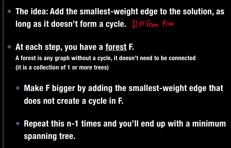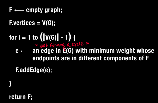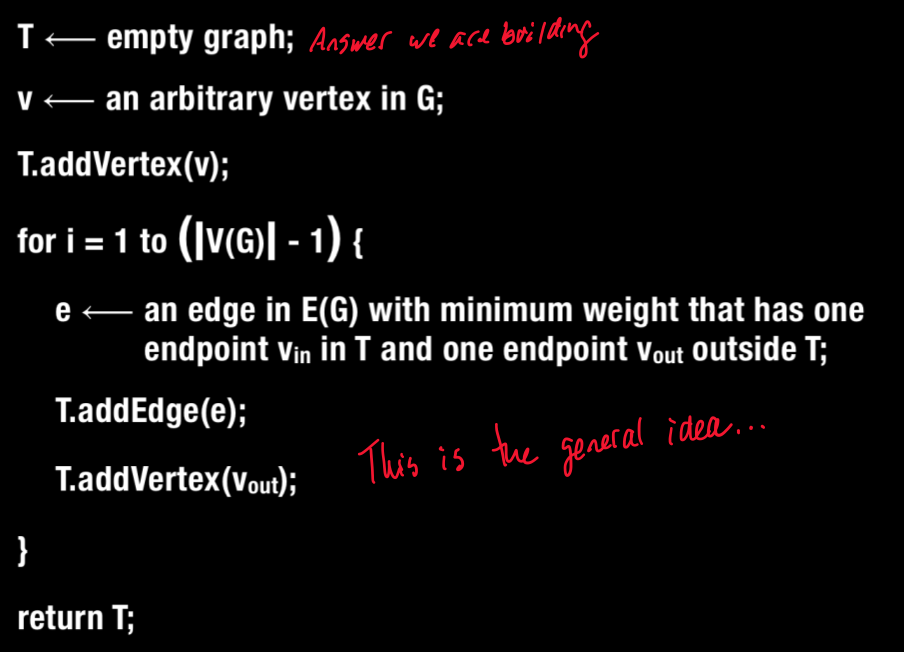 General idea: Exapnd the spanning tree one edge at a time