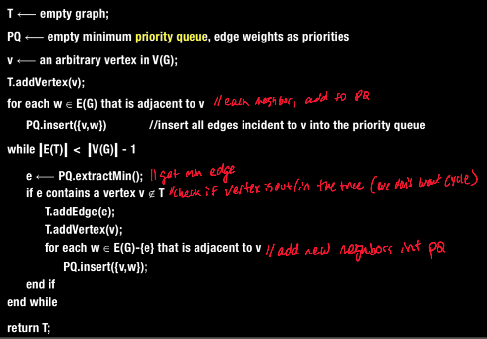 What is the pseudo code for Prim’s MST Algorithm