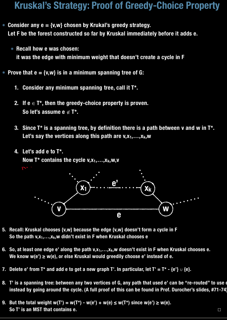 Prove the greedy choice property for MST Kruskal