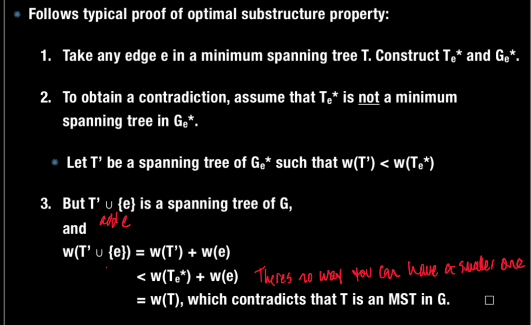 Prove the Optimal substructure for Kraskals