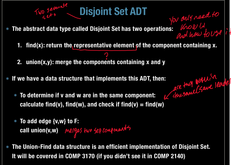 Explain how Disjoint Set (Abstract Data Type) helps to implement kraskal’s algorithm