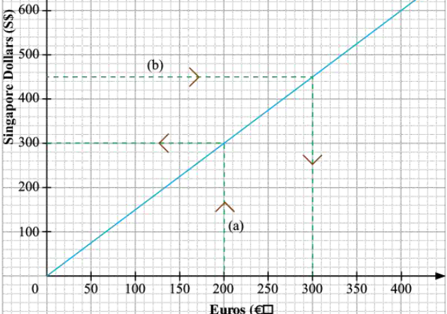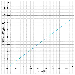 Draw a horizontal line from S$450 until it touches the line, then draw a vertical line to determine Euro$ amount