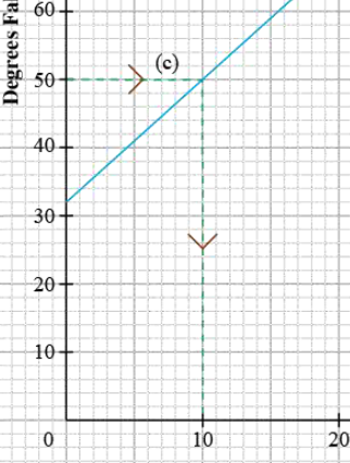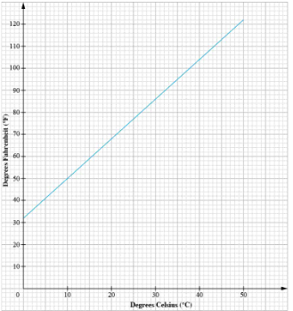 Draw a horizontal line from 50ºF until it touches the line, then draw a vertical line to determine the celsius rate