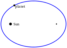 The orbital path of a planet around the Sun is an ellipse, not a perfect circle. The Sun lies at one of the foci of the ellipse