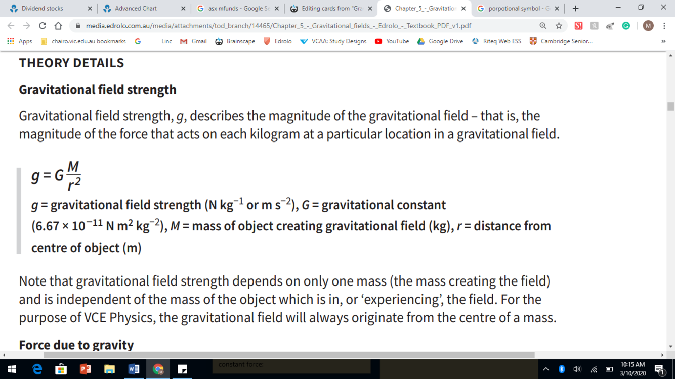 gravitational field strength a measure of the gravitational force that acts on each unit of mass at a point in space