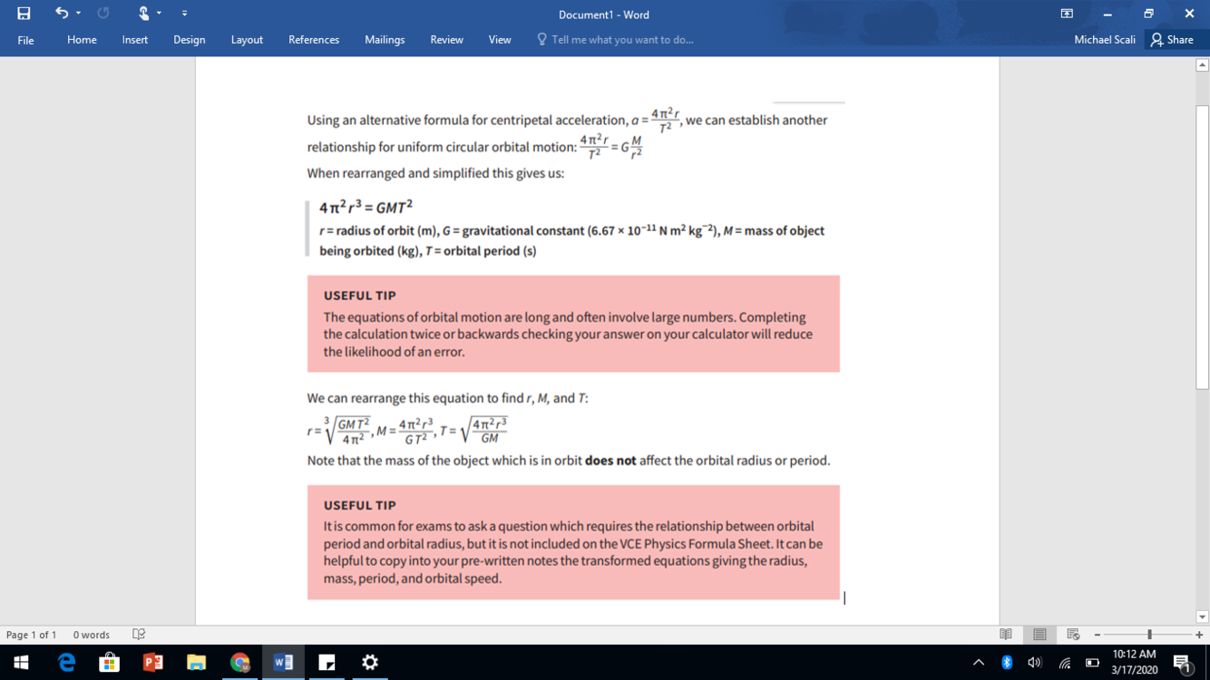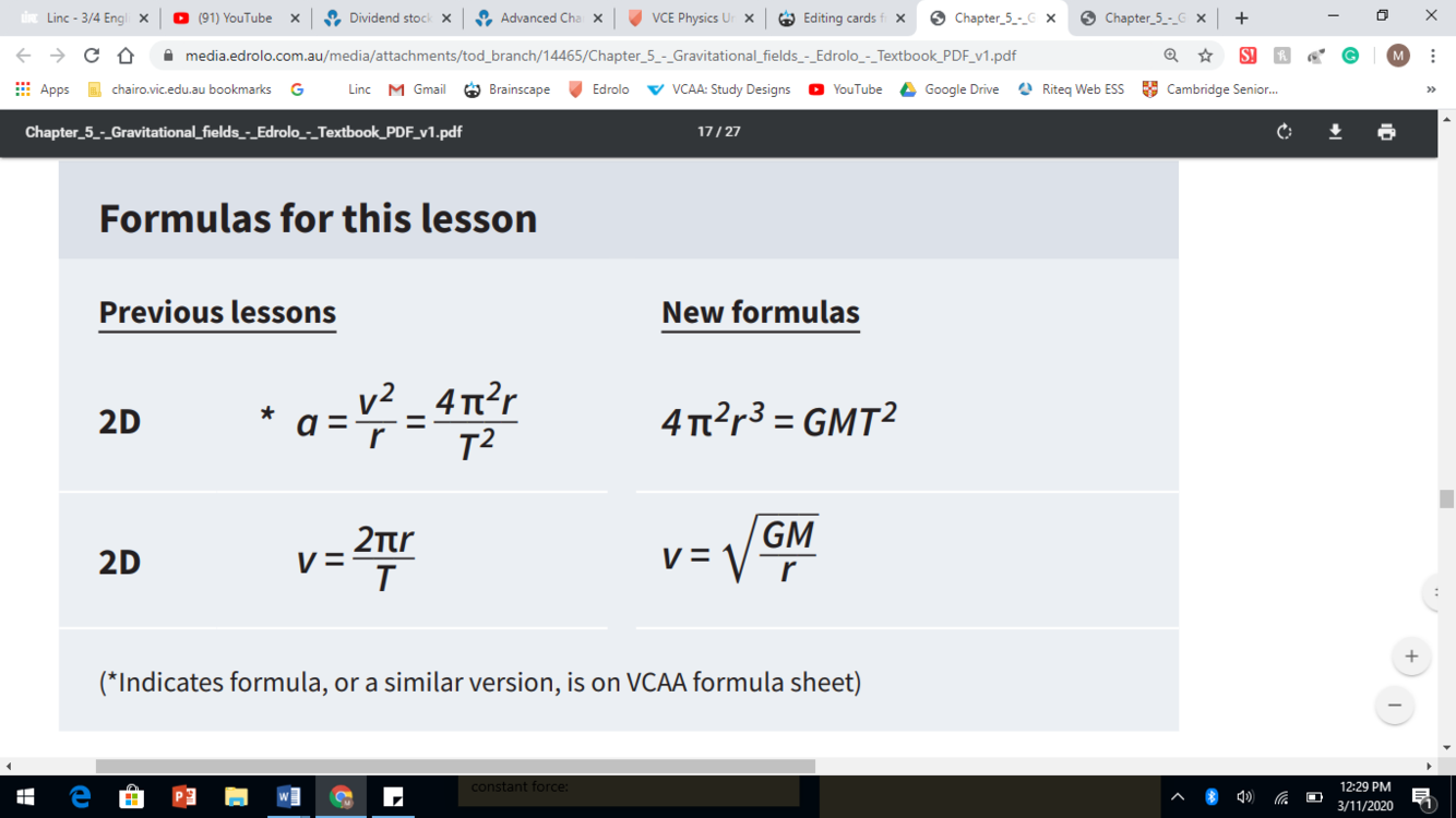 The formula for centripetal acceleration and relationship with uniform circular motion