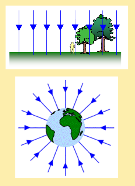 Gravitational field lines show the direction of the force that would be exerted on a (positive) test mass at that point in the gravitational field