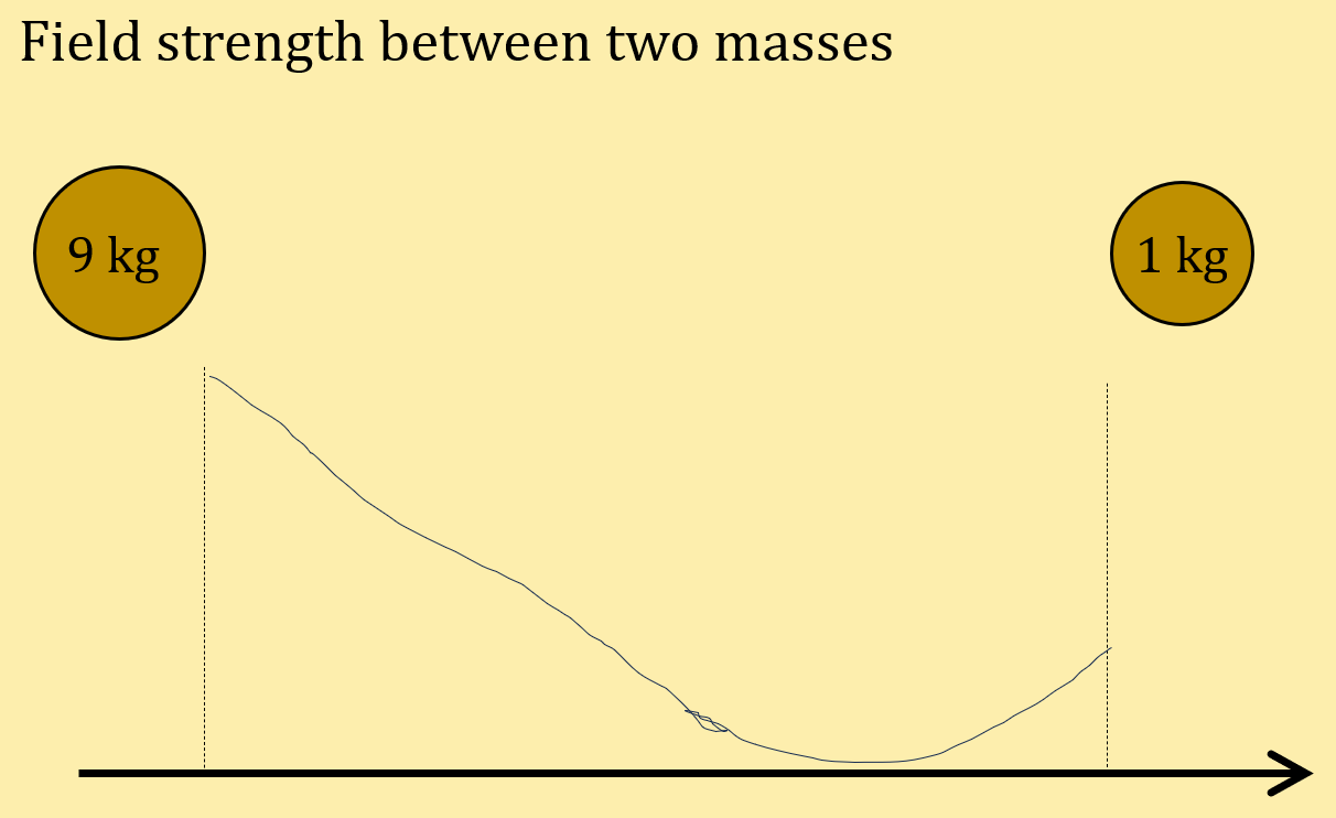 Sketch of the magnitude of the gravitiational field strength between 2 masses