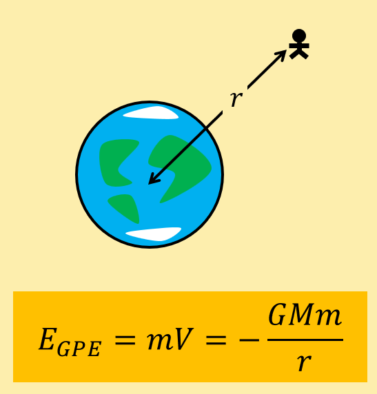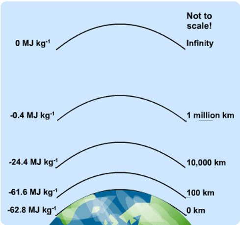 The gravitational potential from a point mass (or outside a spherical mass) can be calculated using the equation - (J/Kg)
