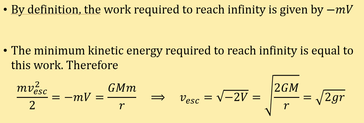 Escape velocity is the minimum velocity required for a test mass to escape a body’s gravitational field and reach infinite separation, without any additional energy input.