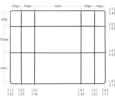 grid-template-columns: [first] 40px [line2] 50px [line3] auto [col4-start] 50px [five] 40px [end];
