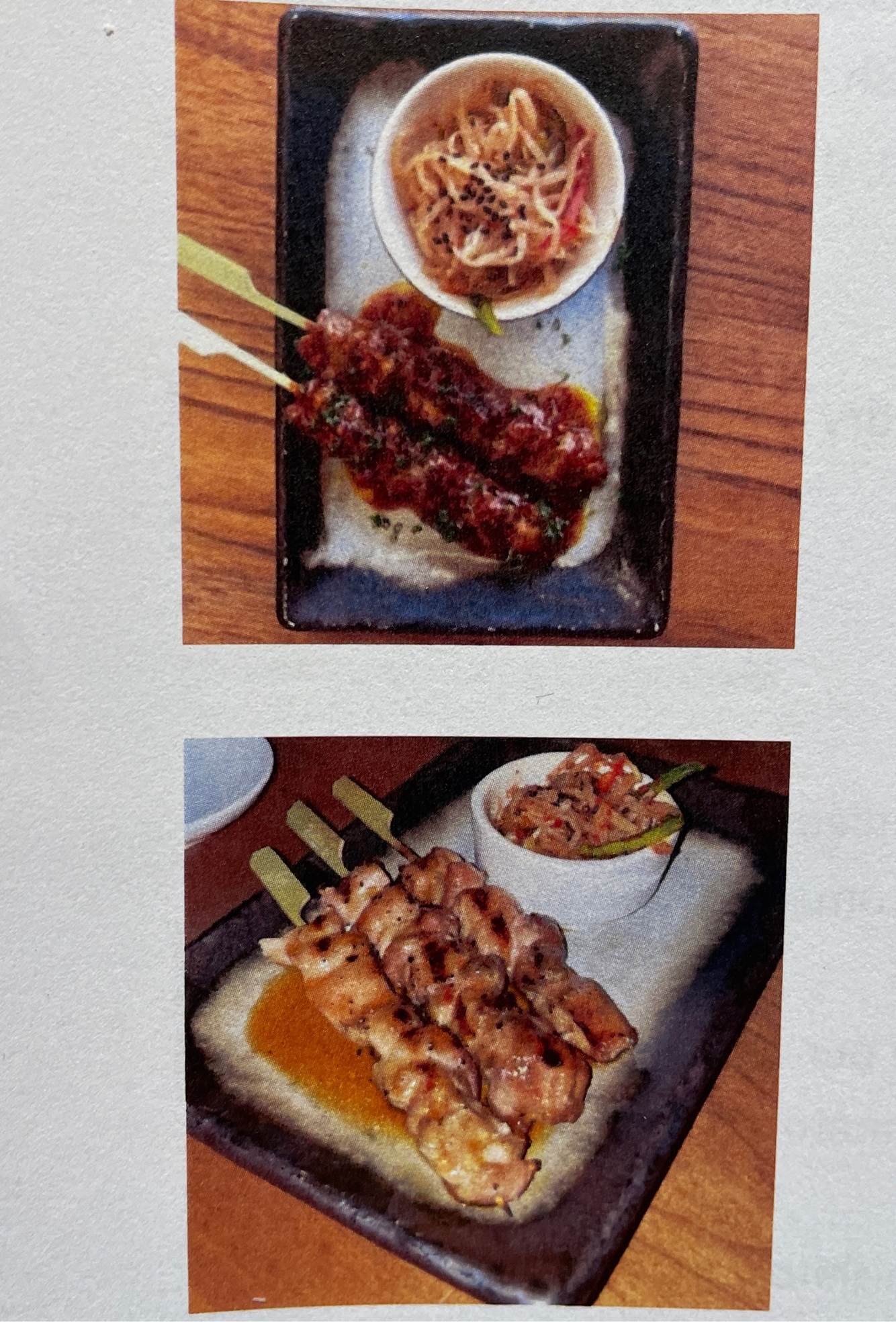 Kushiyaki skewers are grilled and dressed with choice of sauce.
