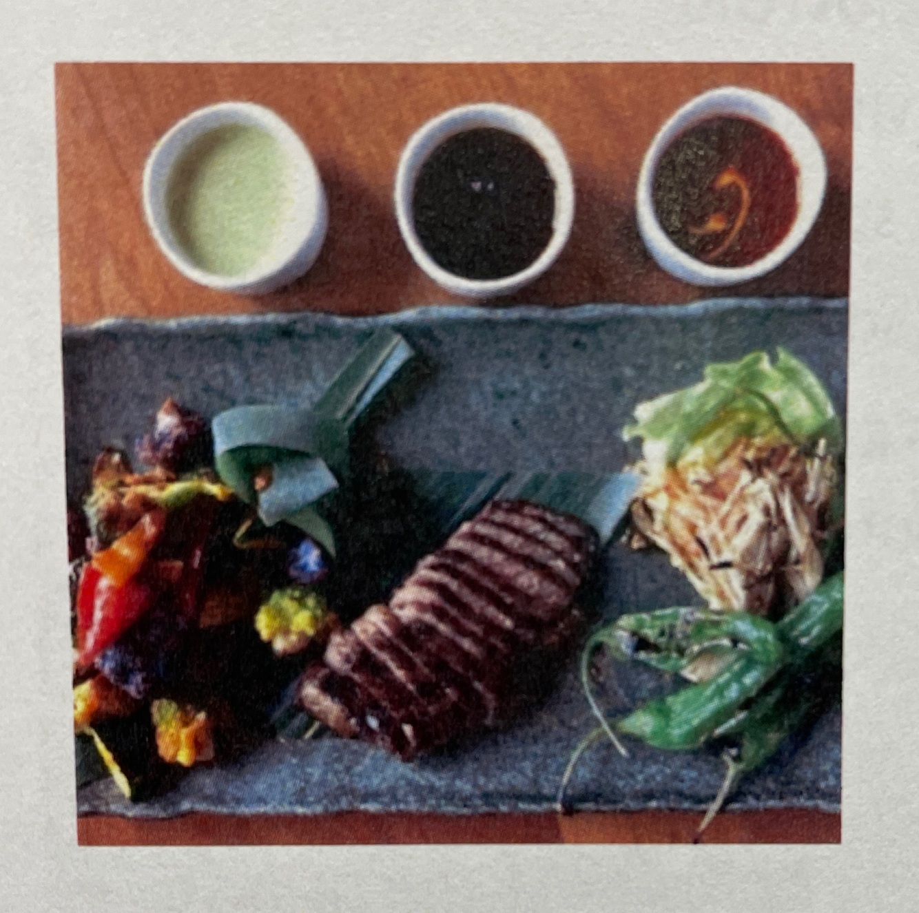 Main ingredients: A5 wagyu beef (4 ounce minimum), kimchi, shishito peppers, baby heirloom tomatoes sauce: