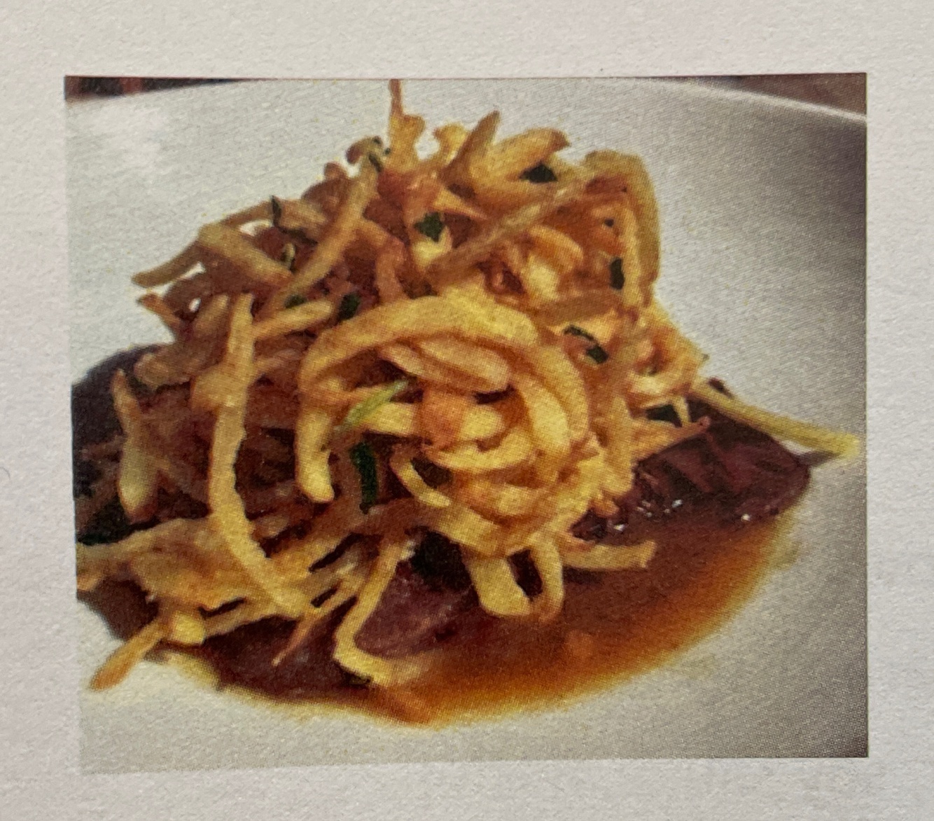 Main ingredients: 5 ounces grilled ribeye, crispy Maui onions, sage and thyme