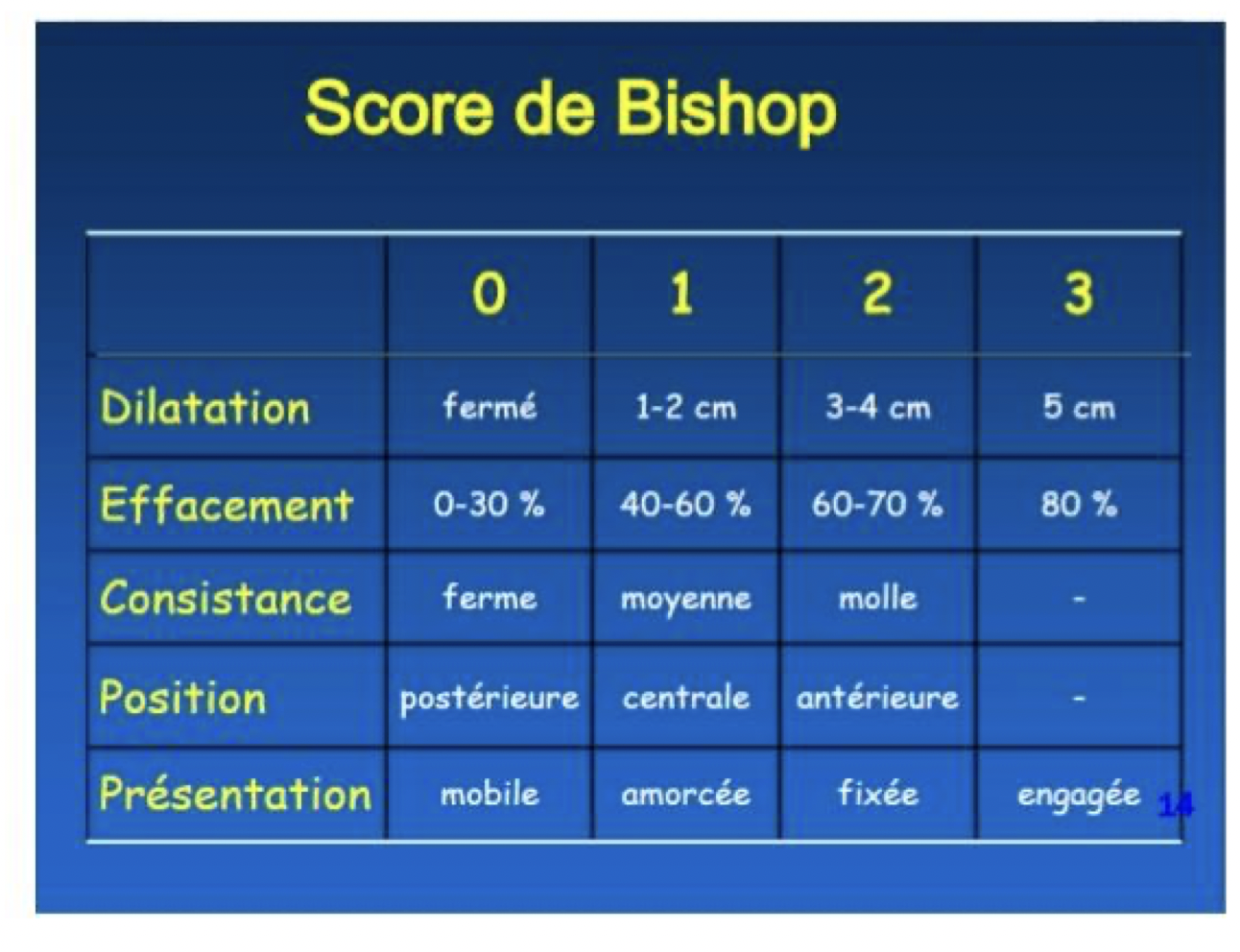 On peut utiliser le score de _______ pour établir un pronostic du déclenchement.