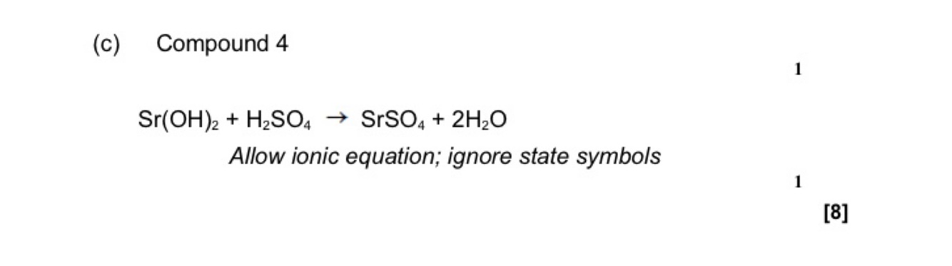 Sr(s) + 2H2O(g) —->Sr(OH)2 + H2(g)