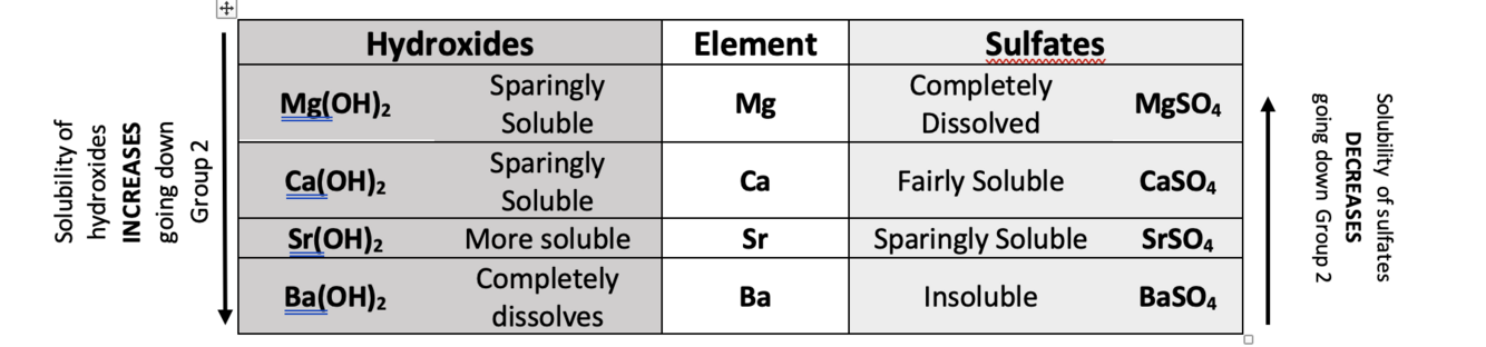 Solubilities of Group 2 Hydroxides and Sulfates
