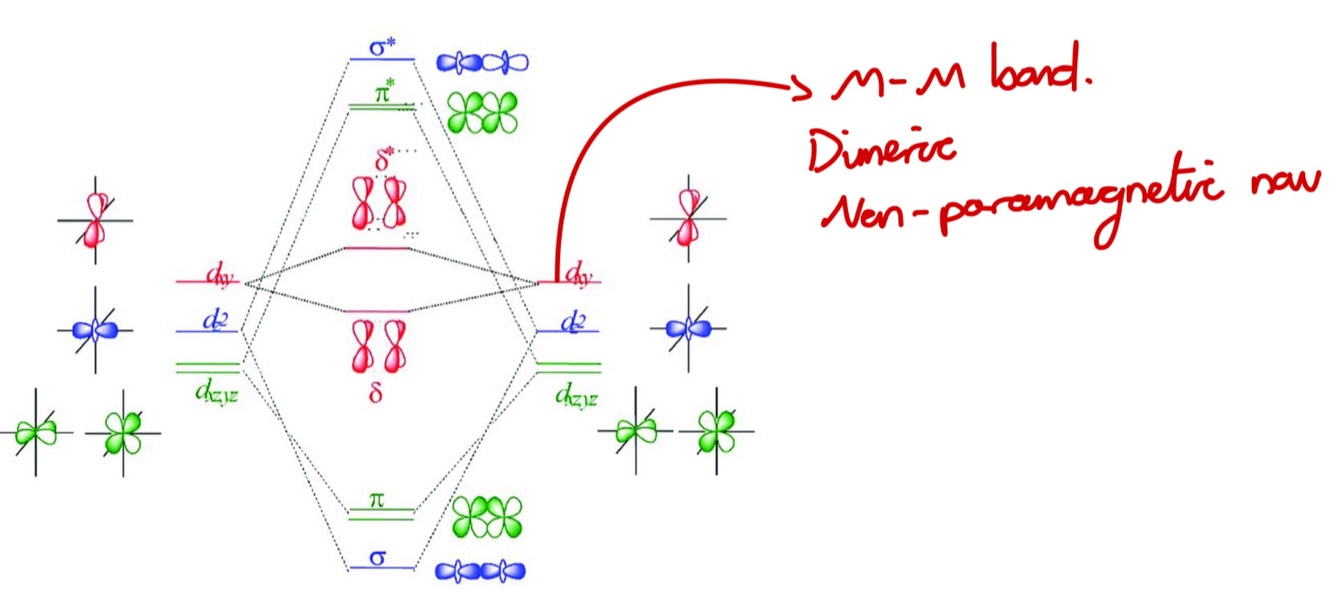 The two dxy orbitals overlap to give a fourth bond so called ∂ bond