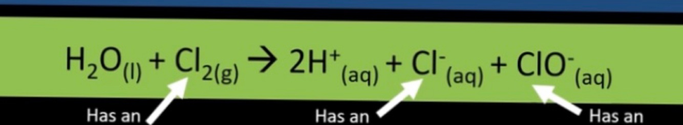 Disproportionation Reaction-> Chlorine is simultaneously reduced and oxidised