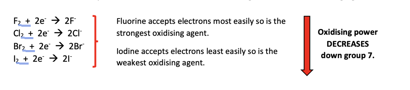 the element HIGHEST UP Group 7 should form a HALIDE ION, whereas the halogen LOWEST DOWN Group 7 should form a HALOGEN MOLECULE