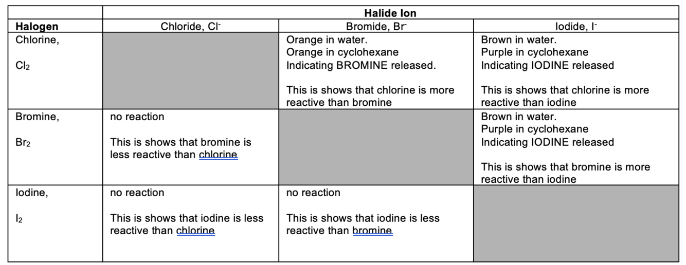 Br2= Aq- yellow/brown. Non polar- orange/brown