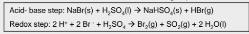 What are the observations when sodium bromine reacts with concentrated sulfuric acid? State the type of reaction (s) that takes place, state the products and write the equation (s)