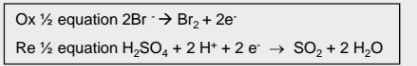 Write the half equations for the redox reaction that takes place between sodium bromine and concentrates sulfuric acid