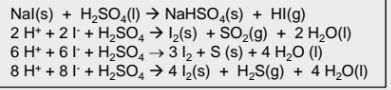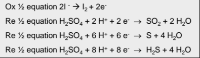 Write the half equations for the redox reaction that takes place between sodium iodide and concentrates sulfuric acid