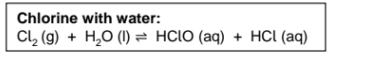 Chlorine reacts with cold, dilute sodium hydroxide to form sodium chlorate(I), which is an oxidising agent and an active ingredient in household bleach