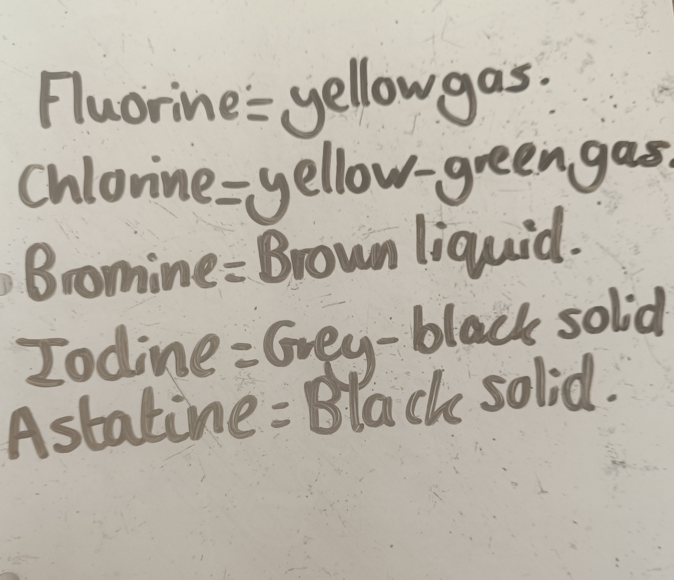 Reactivity decreases as you descend group 7 because the outer electrons get further from the nucleus (the atomic radius increases), and shielding increases. This causes the outer shell to experience less nuclear attraction so it’s harder to attract an electron
