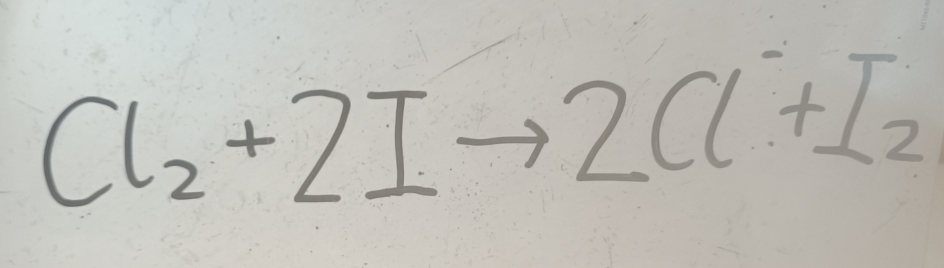 When chlorine is bubbled through an aqueous solution of potassium iodide, the solution becomes brown due to the formation of iodine. Write the ionic equation for this.