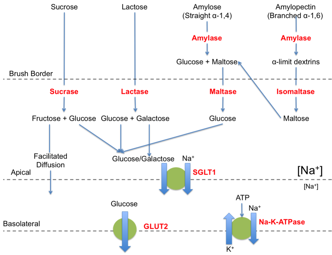 [*] Brush border enzymes complete breakdown to glucose.